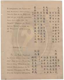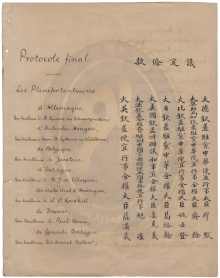 今将以上条款缮定同文十二分,均由诸国全权大臣画押,诸国全权大臣各存一分,中国全权大臣收存一分