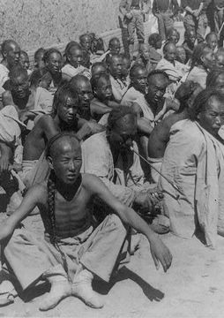 拳民同时四处破坏教堂攻击教民,庄王府前大院被当成集体大屠杀的刑场