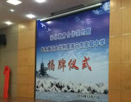 2012年6月,海宁市高级中学开始与华东师范大学合作办学,学校增挂华东师范大学海宁实验高级中学牌,并由华东师范大学周彬教授出任校长