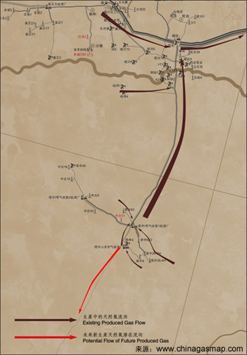 中国其他地区已建成的输气管道主要有:华北至北京输气管线(两条)、大港至天津输气管线、中沧线(濮阳至沧州)、中开线(濮阳至开封)、天沧线(天津至沧州)、陕京线(靖边至北京)、靖西线(靖边至西安)、靖银线(靖边至银川)、轮库线(轮南至库尔勒)、吐乌线(吐鲁番至乌鲁木齐)等