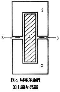 图4中1是通过大电流导体的截面,2是两块磁性材料,在两个空气隙中放有霍尔器件3